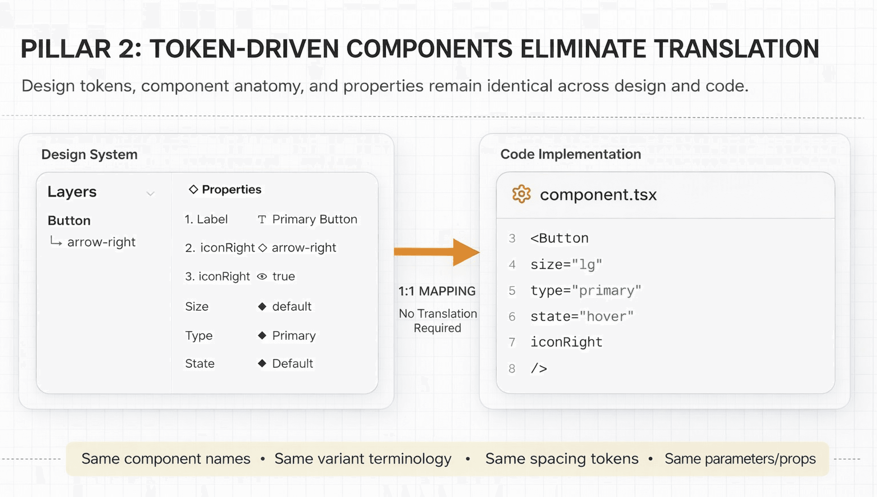 What exists in code must exist in Figma, with a direct, unambiguous mapping: